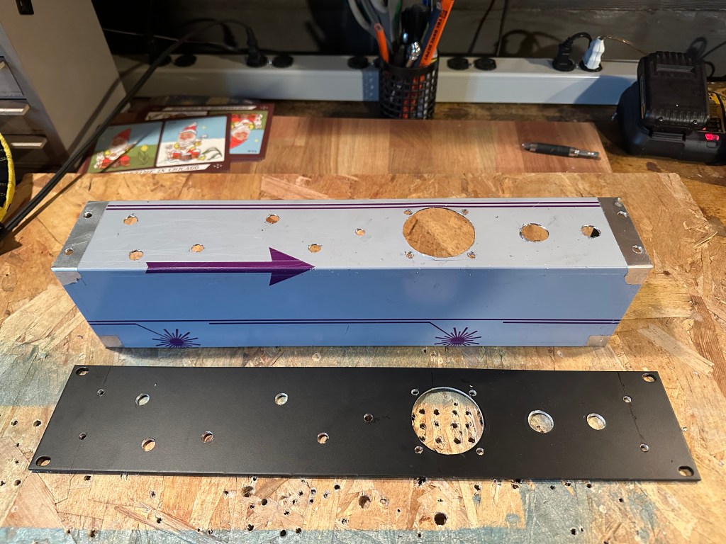 Once I’ve drilled out the four holes on both the faceplate and chassis, I mount the faceplate to drill the remaining holes. This ensures a uniform, consistent hole set, making mounting much easier later on.